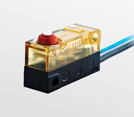 The switch mechanism of this microswitch has been designed to be especially robust. Catch springs and return springs are designed so that the switching process works reliably even in the event of shocks and vibrations.